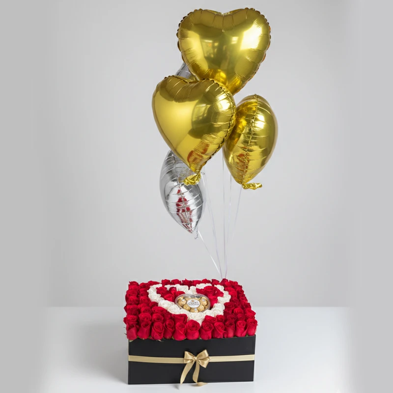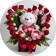 Celebra el amor con elegancia. Esta exclusiva caja de lujo combina la delicadeza de las rosas rosadas y flores de estación con la tentación de fresas achocolatadas de diseño.