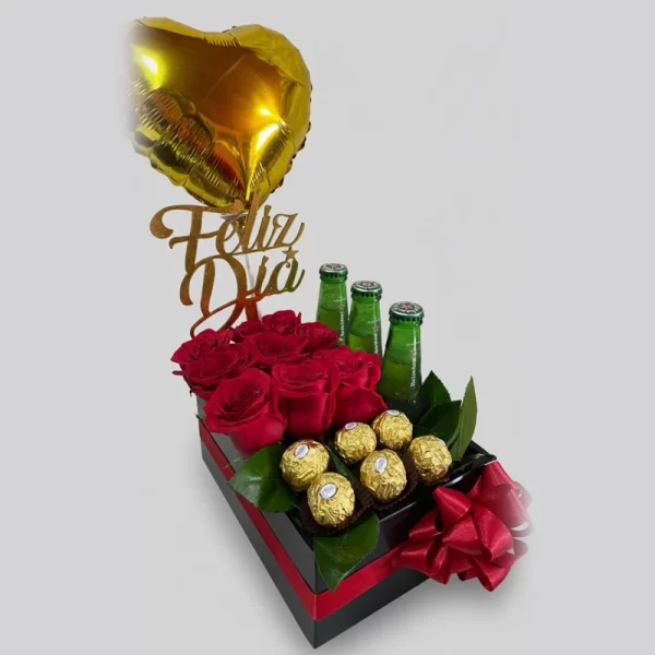 Cajita bombón girasoles y rosas