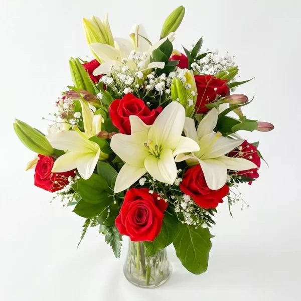 Jarrón de rosas y lirios